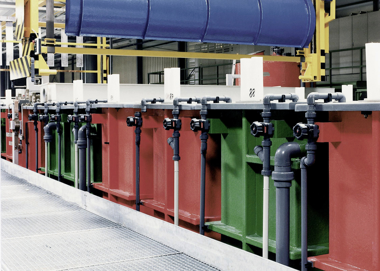 SNC GmbH Oberflächentechnik: Galvanotechnik, Eloxaltechnik Behälter und Komponente für Ihre Galvanotechnik und Eloxaltechnik Unsere 50-jährige Erfahrung in der Herstellung von Behältern und Komponenten für die Oberflächentechnik steht für Qualität und Langlebigkeit unserer Produkte.Bei der Konzeption der Behälter und Komponenten für die Galvano- oder Eloxaltechnik gehen wir selbstverständlich auf Energie- und Umweltfragen ein. So erfüllen wir höchste behördliche Auflagen. Das Medium und die Temperatur bestimmen den Behälterwerkstoff und beeinflussen die Statik. Auch die Auslegung der Behälter erfolgt durch das Team von Weber Kunststofftechnik. Unsere Lieferkomponenten für die Galvano- und Eloxaltechnik umfassen: Wärmetauscher Abdeckungen Ventilatoren Aufnahmeböcke Kaskadensysteme Begehungen Wasserversorgung Pumpen Überlaufsysteme Lufteinblasung Deckelsysteme Absaugkanäle Rohrleitungssysteme Abluftverrohrungen Abspritzsysteme Auffangwannen Filter Sie erhalten die Kunststoffbehälter für die Oberflächentechnik in folgenden Ausführungen: PP PP-GFK PE PE-GFK PVC-GFK PVDF-GFK ECTFE-GFK Stahl Edelstahl Wärmeisolierung Impressionen: Oberflächentechnik – Galvanotechnik, Eloxaltechnik