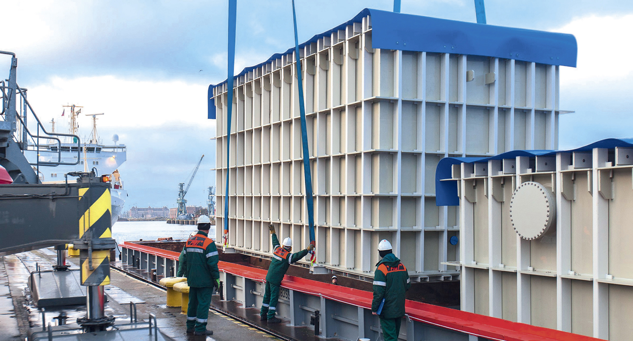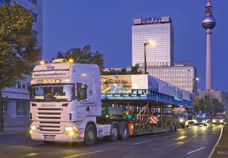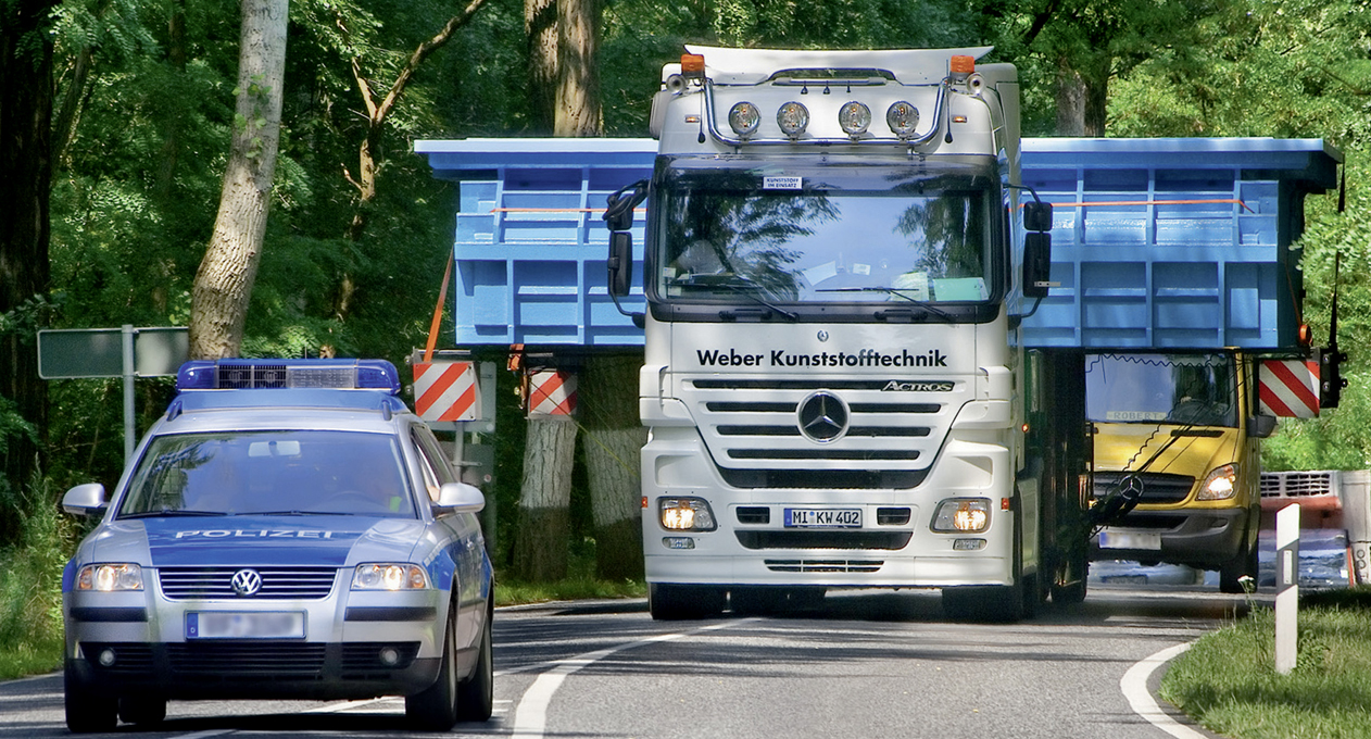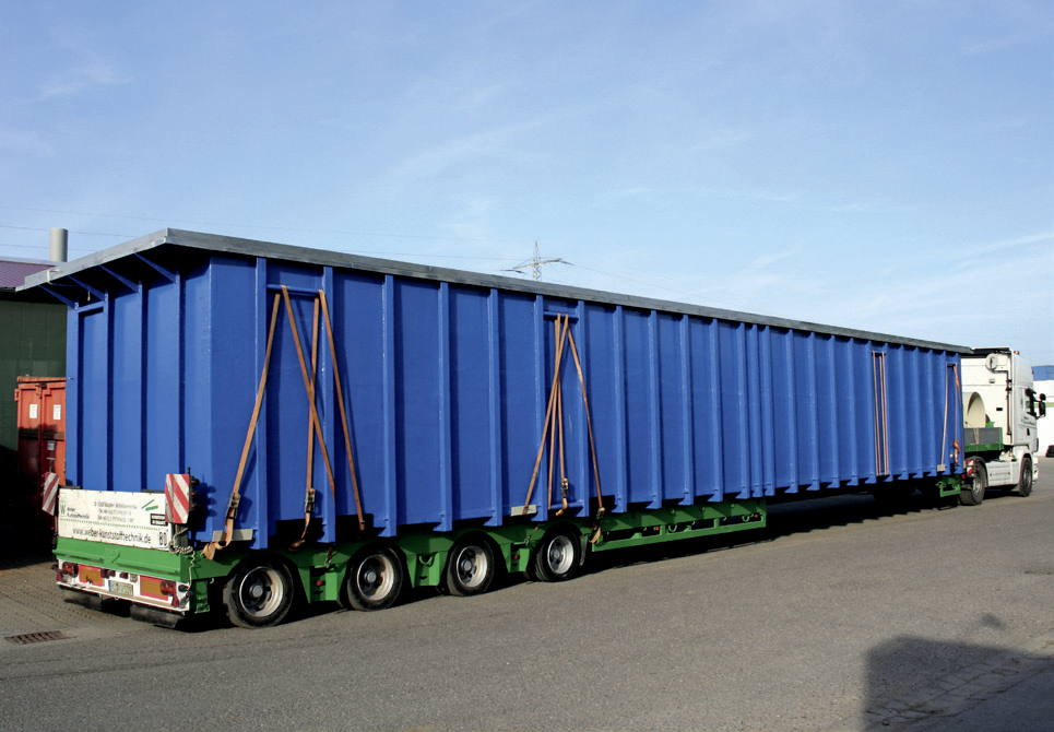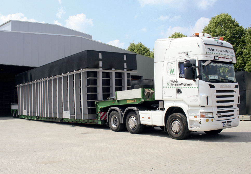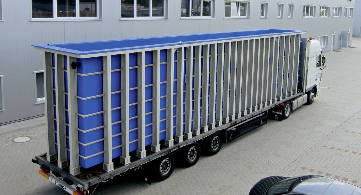Logistik: Kontrolliert und sicher ans Ziel Flexibilität durch Spezialfahrzeuge Durch unsere auf unsere Produkte zugeschnittenen Fahrzeuge und Aufnahmevorrichtungen sorgen wir für eine sichere Anlieferung der Behälter und Anlagenkomponenten an ihren Bestimmungsort. Zum Schutz von kälteempfindlichen Produkten und Materialien (wie zum Beispiel PP) sind die geschlossenen Aufleger bei niedrigen Temperaturen während des Transportes beiheizbar. Alternativ werden unsere Produkte mit Thermoaufliegern transportiert. Zum nachhaltigen Schutz der Umwelt sind unsere Fahrzeuge auf dem neuesten Stand der Technik und erfüllen die derzeit höchste Abgasnorm EURO-6. Zur Ausstattung unseres Fuhrparks gehören: Kesselbrücken (Tiefbett) verbreiterbar und teleskopierbar Semi-Tieflader, teleskopierbar Tautliner, verbreiterbar unter Plane Impressionen: Logistik