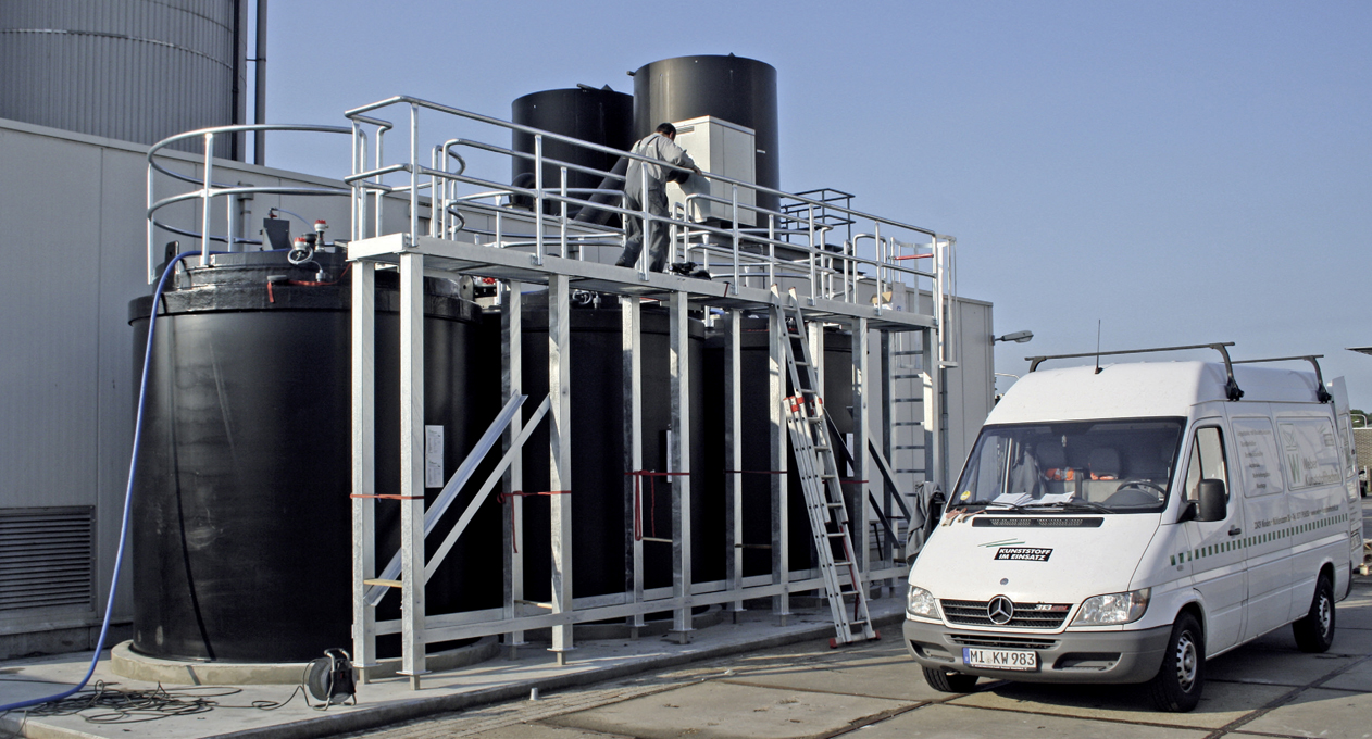 Montageservice von Weber Kunststofftechnik Unser Montageservice: Montageplanung und -koordination aus einer Hand Als Anbieter von Komplettanlagen entwickeln wir Servicelösungen auf Grundlage unserer fundierten Produktkenntnisse sowie der langjährigen Erfahrung in der Verarbeitung von Thermoplastmaterialien und Verbundwerkstoffen. Für den Rohrleitungsbau und den Montageservice bedeutet dies ein hohes Maß an Qualität und Flexibilität in der Ausführung. Auf unseren Baustellen sind ständig über 40 Monteure im Einsatz, die bei Bedarf auch kurzfristig durch Personal unserer Produktionsstandorte verstärkt werden können. Die Montageplanung erfolgt in Absprache mit dem Kunden und der am Bau beteiligten Gewerke. Rahmenbedingungen auf der Baustelle und zeitliche Abläufe müssen mit den Ansprechpartnern frühzeitig abgestimmt und termingerecht koordiniert werden. Einbringung und Aufstellung der Behälter Vor-Ort-Montage von Behältern Rohrleitungsmontagen Raumauskleidung/Flächenschutz Behälter- und Altanlagensanierung GFK-Beschichtungen Sondermontagen Elektroinstallation/Steuerungsbau Inbetriebnahme Impressionen: Montageservice